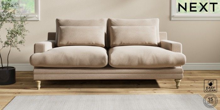 6.12.1 Buy Hutton Deep Relaxed Sit 3 Seater Sofa Tweedy Blend Easy Clean Light Dove Natural Country Turned - Light from the Next UK online shop Click here to use our accessible website
