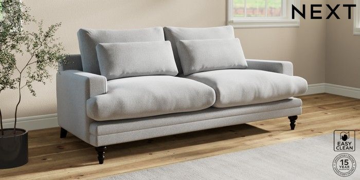 7.0.3 Buy Hutton Deep Relaxed Sit 3 Seater Sofa Tweedy Blend Easy Clean Light Silver Grey Country Turned - Dark from the Next UK online shop Click here to use our accessible website
