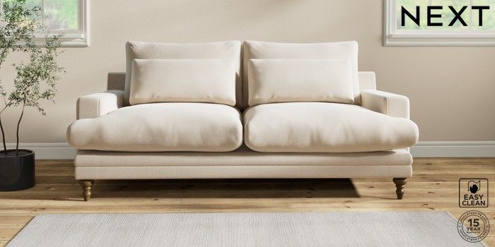 6.12.1 Buy Hutton Deep Relaxed Sit 3 Seater Sofa Tweedy Blend Easy Clean Oyster Country Turned - Mid from the Next UK online shop Click here to use our accessible website
