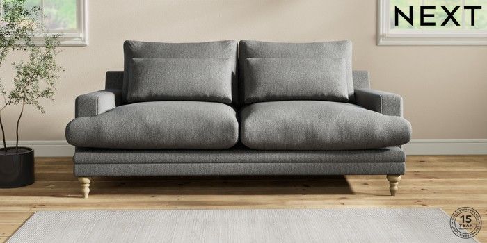 6.12.1 Buy Hutton Deep Relaxed Sit 3 Seater Sofa Tweedy Chenille Dark Grey Country Turned - Light from the Next UK online shop Click here to use our accessible website