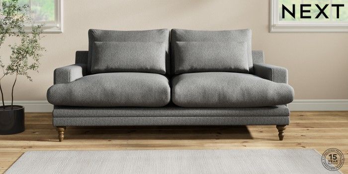6.12.1 Buy Hutton Deep Relaxed Sit 3 Seater Sofa Tweedy Chenille Dark Grey Country Turned - Mid from the Next UK online shop Click here to use our accessible website