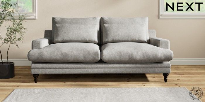 6.12.1 Buy Hutton Deep Relaxed Sit 3 Seater Sofa Tweedy Chenille Mid Grey Country Turned - Dark from the Next UK online shop Click here to use our accessible website