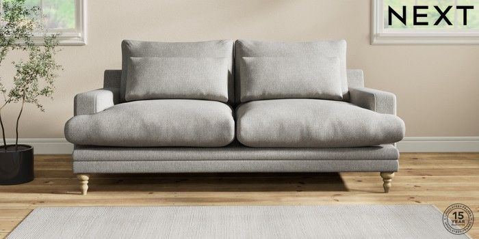6.12.1 Buy Hutton Deep Relaxed Sit 3 Seater Sofa Tweedy Chenille Mid Grey Country Turned - Light from the Next UK online shop Click here to use our accessible website