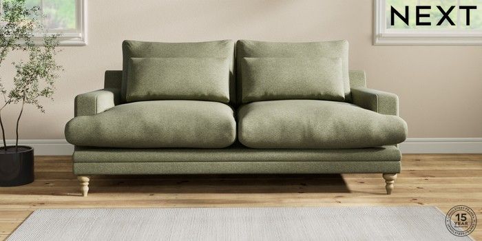 6.12.1 Buy Hutton Deep Relaxed Sit 3 Seater Sofa Tweedy Chenille Mid Moss Green Country Turned - Light from the Next UK online shop Click here to use our accessible website