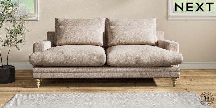 6.12.1 Buy Hutton Deep Relaxed Sit 3 Seater Sofa Tweedy Chenille Mid Natural Country Turned - Light from the Next UK online shop Click here to use our accessible website