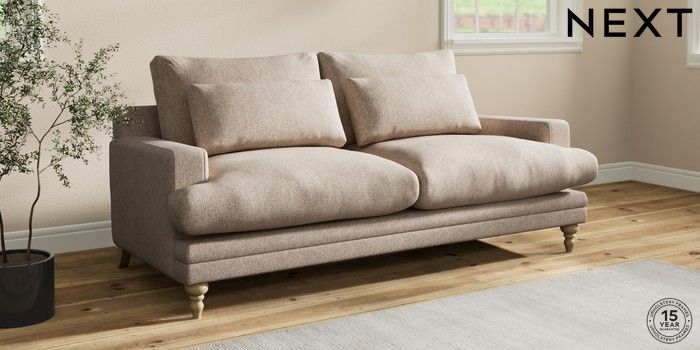 7.0.3 Buy Hutton Deep Relaxed Sit 3 Seater Sofa Tweedy Chenille Mid Natural Country Turned - Light from the Next UK online shop Click here to use our accessible website