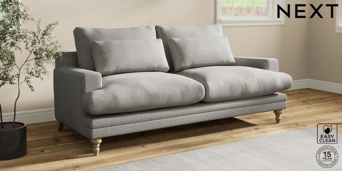 7.0.3 Buy Hutton Deep Relaxed Sit 3 Seater Sofa Woven Chenille Easy Clean Light Grey Country Turned - Light from the Next UK online shop Click here to use our accessible website