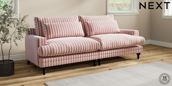 7.0.3 Buy Hutton Deep Relaxed Sit 4 Seater Sofa Bold Chenille Stripe Dark Pink Country Turned - Dark from the Next UK online shop Click here to use our accessible website