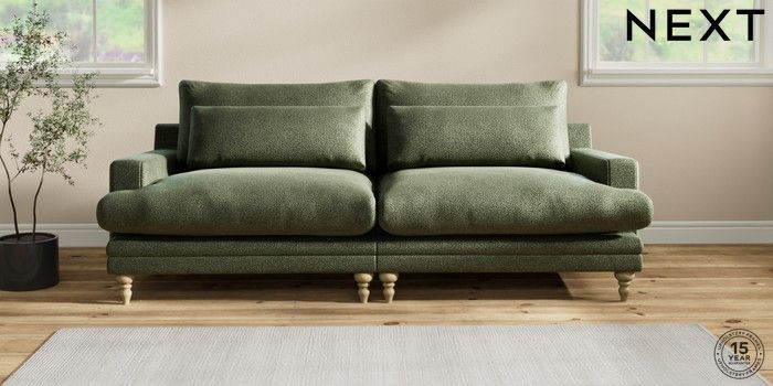6.12.1 Buy Hutton Deep Relaxed Sit 4 Seater Sofa Boucle Chenille Dark Moss Green Country Turned - Light from the Next UK online shop Click here to use our accessible website