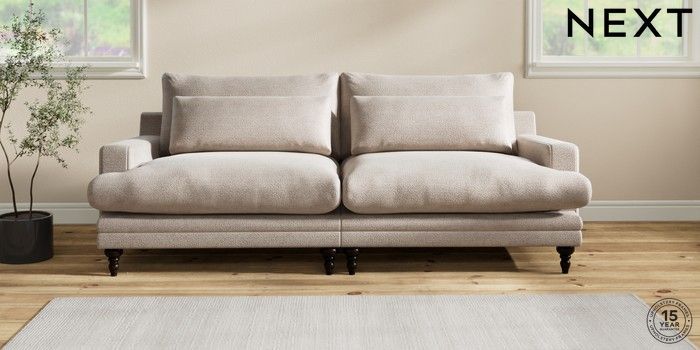 6.12.1 Buy Hutton Deep Relaxed Sit 4 Seater Sofa Boucle Chenille Light Natural Country Turned - Dark from the Next UK online shop Click here to use our accessible website