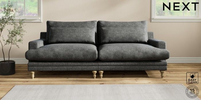 6.12.1 Buy Hutton Deep Relaxed Sit 4 Seater Sofa Boucle Weave Easy Clean Charcoal Grey Country Turned - Light from the Next UK online shop Click here to use our accessible website