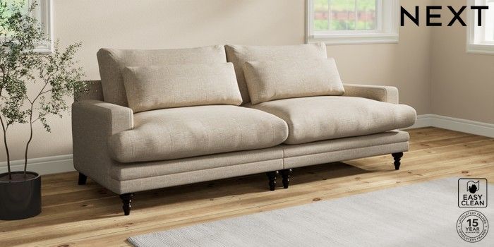 7.0.3 Buy Hutton Deep Relaxed Sit 4 Seater Sofa Boucle Weave Easy Clean Dark Natural Country Turned - Dark from the Next UK online shop Click here to use our accessible website
