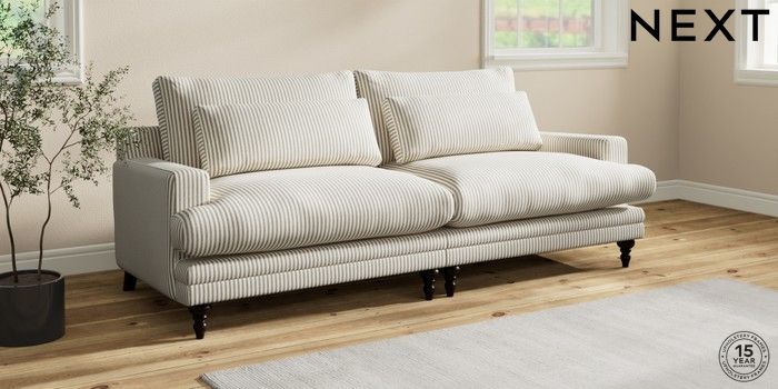 7.0.3 Buy Hutton Deep Relaxed Sit 4 Seater Sofa Chenille Stripe Moss Green Country Turned - Dark from the Next UK online shop Click here to use our accessible website
