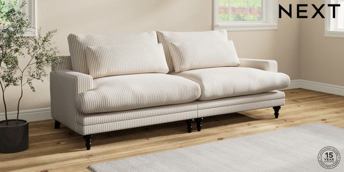 7.0.3 Buy Hutton Deep Relaxed Sit 4 Seater Sofa Chenille Stripe Natural Country Turned - Dark from the Next UK online shop Click here to use our accessible website