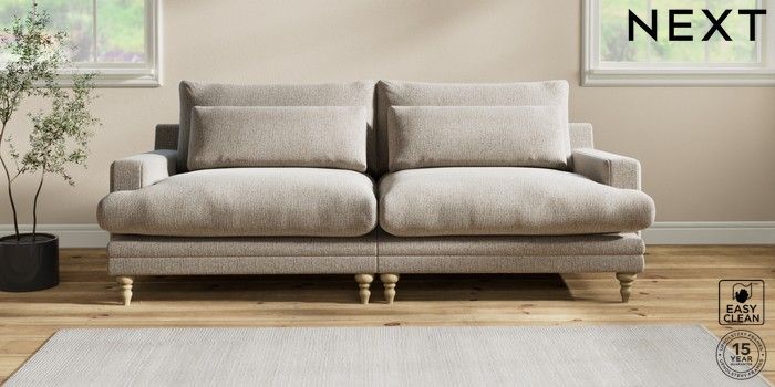 6.12.1 Buy Hutton Deep Relaxed Sit 4 Seater Sofa Chunky Boucle Easy Clean Dove Country Turned - Light from the Next UK online shop Click here to use our accessible website