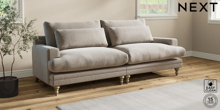 7.0.3 Buy Hutton Deep Relaxed Sit 4 Seater Sofa Chunky Boucle Easy Clean Dove Country Turned - Light from the Next UK online shop Click here to use our accessible website