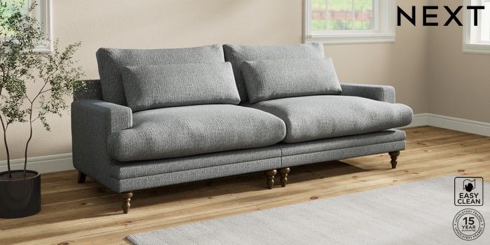 7.0.3 Buy Hutton Deep Relaxed Sit 4 Seater Sofa Chunky Boucle Easy Clean Mid Grey Country Turned - Mid from the Next UK online shop Click here to use our accessible website