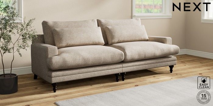7.0.3 Buy Hutton Deep Relaxed Sit 4 Seater Sofa Chunky Boucle Easy Clean Mid Natural Country Turned - Dark from the Next UK online shop Click here to use our accessible website