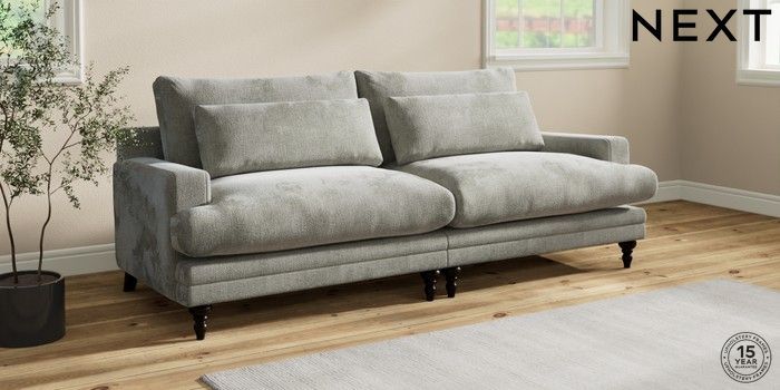 7.0.3 Buy Hutton Deep Relaxed Sit 4 Seater Sofa Chunky Chenille Light Grey Country Turned - Dark from the Next UK online shop Click here to use our accessible website