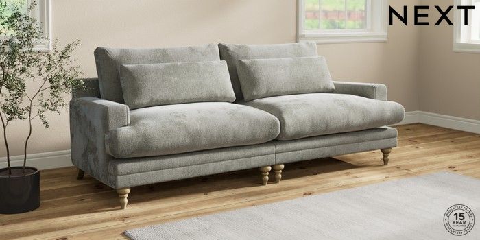 7.0.3 Buy Hutton Deep Relaxed Sit 4 Seater Sofa Chunky Chenille Light Grey Country Turned - Light from the Next UK online shop Click here to use our accessible website