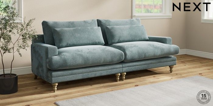 7.0.3 Buy Hutton Deep Relaxed Sit 4 Seater Sofa Chunky Chenille Light Teal Green Country Turned - Light from the Next UK online shop Click here to use our accessible website