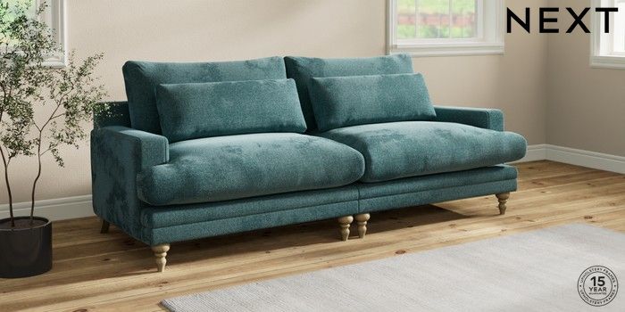 7.0.3 Buy Hutton Deep Relaxed Sit 4 Seater Sofa Chunky Chenille Mid Teal Green Country Turned - Light from the Next UK online shop Click here to use our accessible website