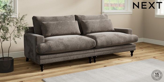 7.0.3 Buy Hutton Deep Relaxed Sit 4 Seater Sofa Chunky Chenille Mink Brown Country Turned - Dark from the Next UK online shop Click here to use our accessible website