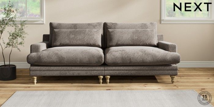 6.12.1 Buy Hutton Deep Relaxed Sit 4 Seater Sofa Chunky Chenille Mink Brown Country Turned - Light from the Next UK online shop Click here to use our accessible website