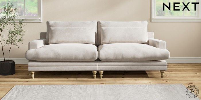 6.12.1 Buy Hutton Deep Relaxed Sit 4 Seater Sofa Chunky Chenille Oyster Country Turned - Light from the Next UK online shop Click here to use our accessible website
