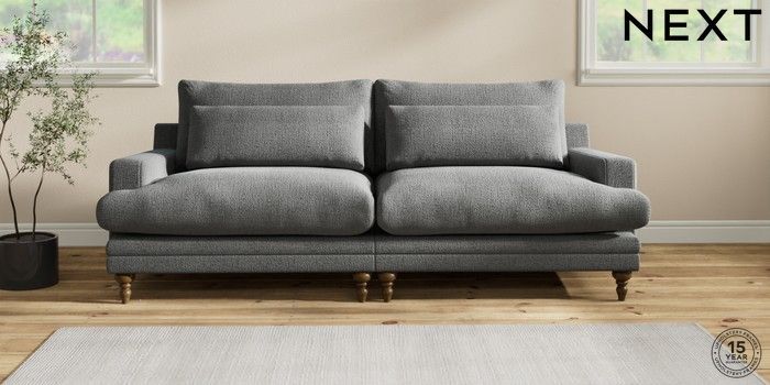6.12.1 Buy Hutton Deep Relaxed Sit 4 Seater Sofa Chunky Texture Dark Grey Country Turned - Mid from the Next UK online shop Click here to use our accessible website