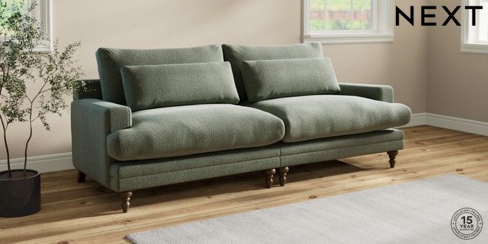 7.0.3 Buy Hutton Deep Relaxed Sit 4 Seater Sofa Chunky Texture Mid Forest Green Country Turned - Mid from the Next UK online shop Click here to use our accessible website