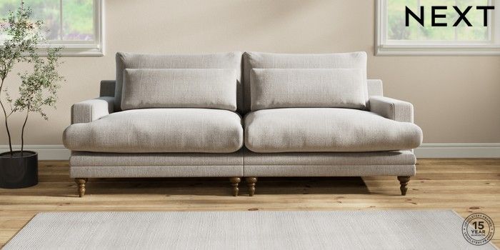 6.12.1 Buy Hutton Deep Relaxed Sit 4 Seater Sofa Chunky Weave Dove Grey Country Turned - Mid from the Next UK online shop Click here to use our accessible website