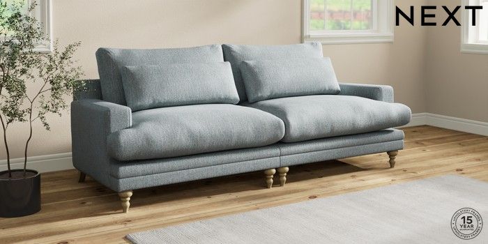 7.0.3 Buy Hutton Deep Relaxed Sit 4 Seater Sofa Chunky Weave Mid Blue Country Turned - Light from the Next UK online shop Click here to use our accessible website