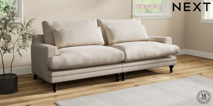 7.0.3 Buy Hutton Deep Relaxed Sit 4 Seater Sofa Chunky Weave Mid Natural Country Turned - Dark from the Next UK online shop Click here to use our accessible website