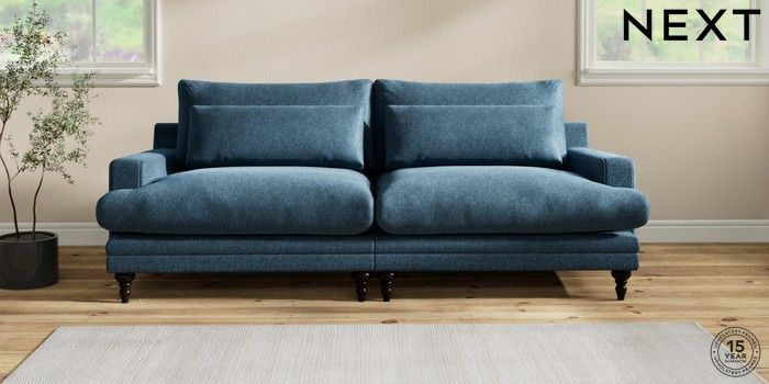 6.12.1 Buy Hutton Deep Relaxed Sit 4 Seater Sofa Cotswold Chenille Dark Blue Country Turned - Dark from the Next UK online shop Click here to use our accessible website