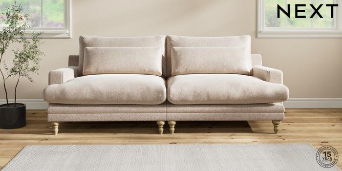 6.12.1 Buy Hutton Deep Relaxed Sit 4 Seater Sofa Cotswold Chenille Light Natural Country Turned - Light from the Next UK online shop Click here to use our accessible website