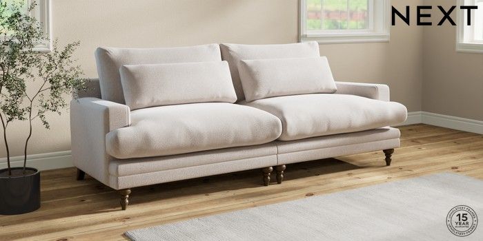 7.0.3 Buy Hutton Deep Relaxed Sit 4 Seater Sofa Cotswold Chenille Oyster Country Turned - Mid from the Next UK online shop Click here to use our accessible website