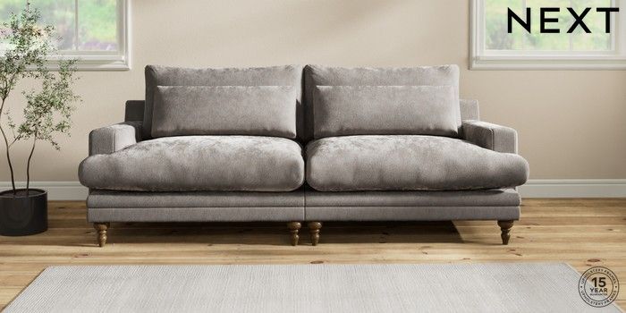 6.12.1 Buy Hutton Deep Relaxed Sit 4 Seater Sofa Distressed Velour French Grey Country Turned - Mid from the Next UK online shop Click here to use our accessible website