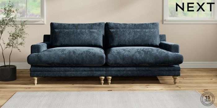 6.12.1 Buy Hutton Deep Relaxed Sit 4 Seater Sofa Distressed Velour Midnight Blue Country Turned - Light from the Next UK online shop Click here to use our accessible website