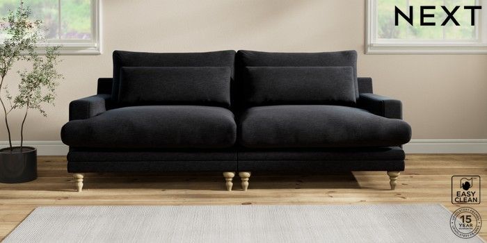 6.12.1 Buy Hutton Deep Relaxed Sit 4 Seater Sofa Fine Chenille Easy Clean Black Country Turned - Light from the Next UK online shop Click here to use our accessible website