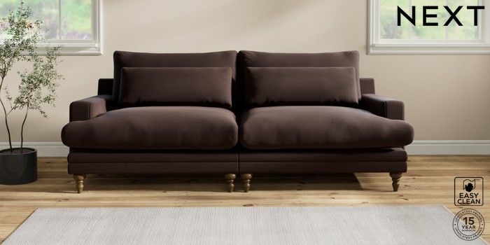 6.12.1 Buy Hutton Deep Relaxed Sit 4 Seater Sofa Fine Chenille Easy Clean Chocolate Brown Country Turned - Mid from the Next UK online shop Click here to use our accessible website