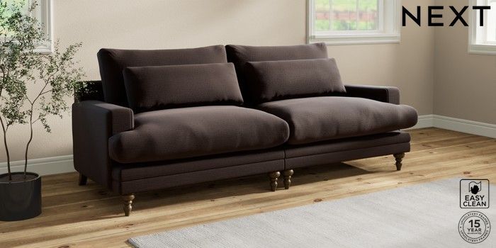 7.0.3 Buy Hutton Deep Relaxed Sit 4 Seater Sofa Fine Chenille Easy Clean Chocolate Brown Country Turned - Mid from the Next UK online shop Click here to use our accessible website