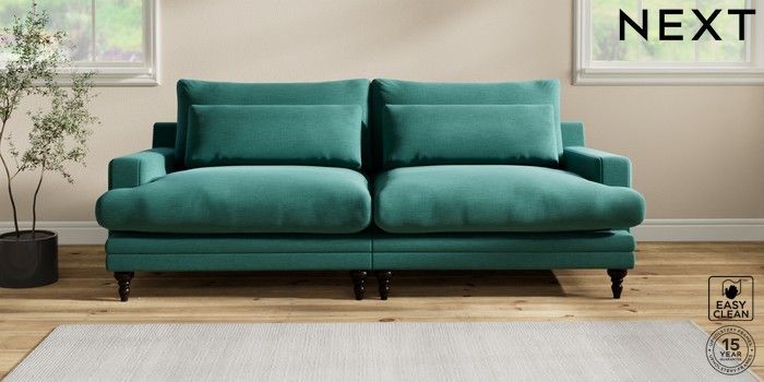 6.12.1 Buy Hutton Deep Relaxed Sit 4 Seater Sofa Fine Chenille Easy Clean Dark Juniper Green Country Turned - Dark from the Next UK online shop Click here to use our accessible website