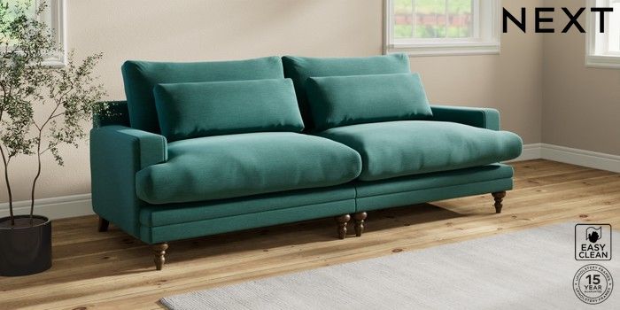 7.0.3 Buy Hutton Deep Relaxed Sit 4 Seater Sofa Fine Chenille Easy Clean Dark Juniper Green Country Turned - Mid from the Next UK online shop Click here to use our accessible website