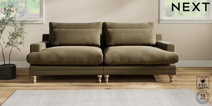 6.12.1 Buy Hutton Deep Relaxed Sit 4 Seater Sofa Fine Chenille Easy Clean Dark Moss Green Country Turned - Light from the Next UK online shop Click here to use our accessible website