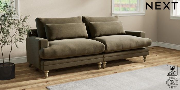 7.0.3 Buy Hutton Deep Relaxed Sit 4 Seater Sofa Fine Chenille Easy Clean Dark Moss Green Country Turned - Light from the Next UK online shop Click here to use our accessible website