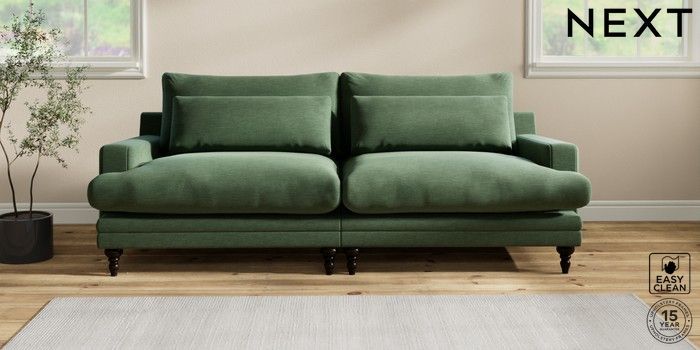 6.12.1 Buy Hutton Deep Relaxed Sit 4 Seater Sofa Fine Chenille Easy Clean Mid Khaki Green Country Turned - Dark from the Next UK online shop Click here to use our accessible website