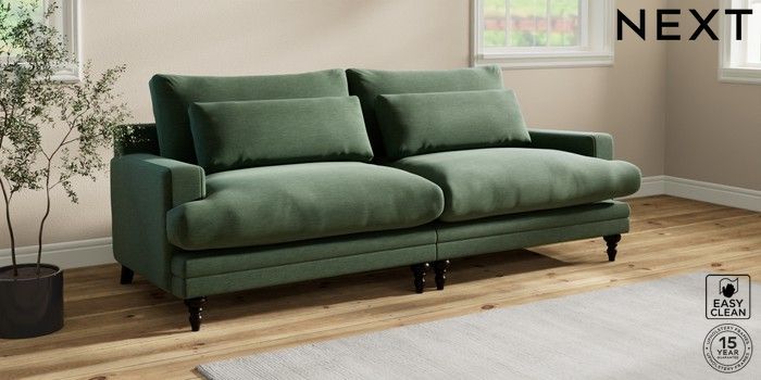 7.0.3 Buy Hutton Deep Relaxed Sit 4 Seater Sofa Fine Chenille Easy Clean Mid Khaki Green Country Turned - Dark from the Next UK online shop Click here to use our accessible website