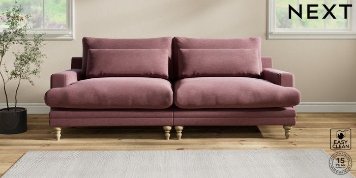 6.12.1 Buy Hutton Deep Relaxed Sit 4 Seater Sofa Fine Chenille Easy Clean Mid Mulberry Purple Country Turned - Light from the Next UK online shop Click here to use our accessible website