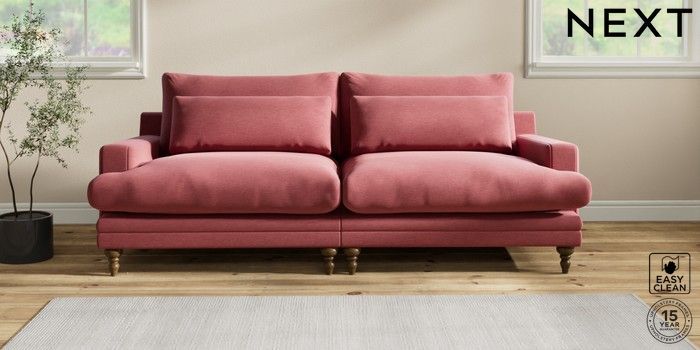 6.12.1 Buy Hutton Deep Relaxed Sit 4 Seater Sofa Fine Chenille Easy Clean Mid Pink Country Turned - Mid from the Next UK online shop Click here to use our accessible website